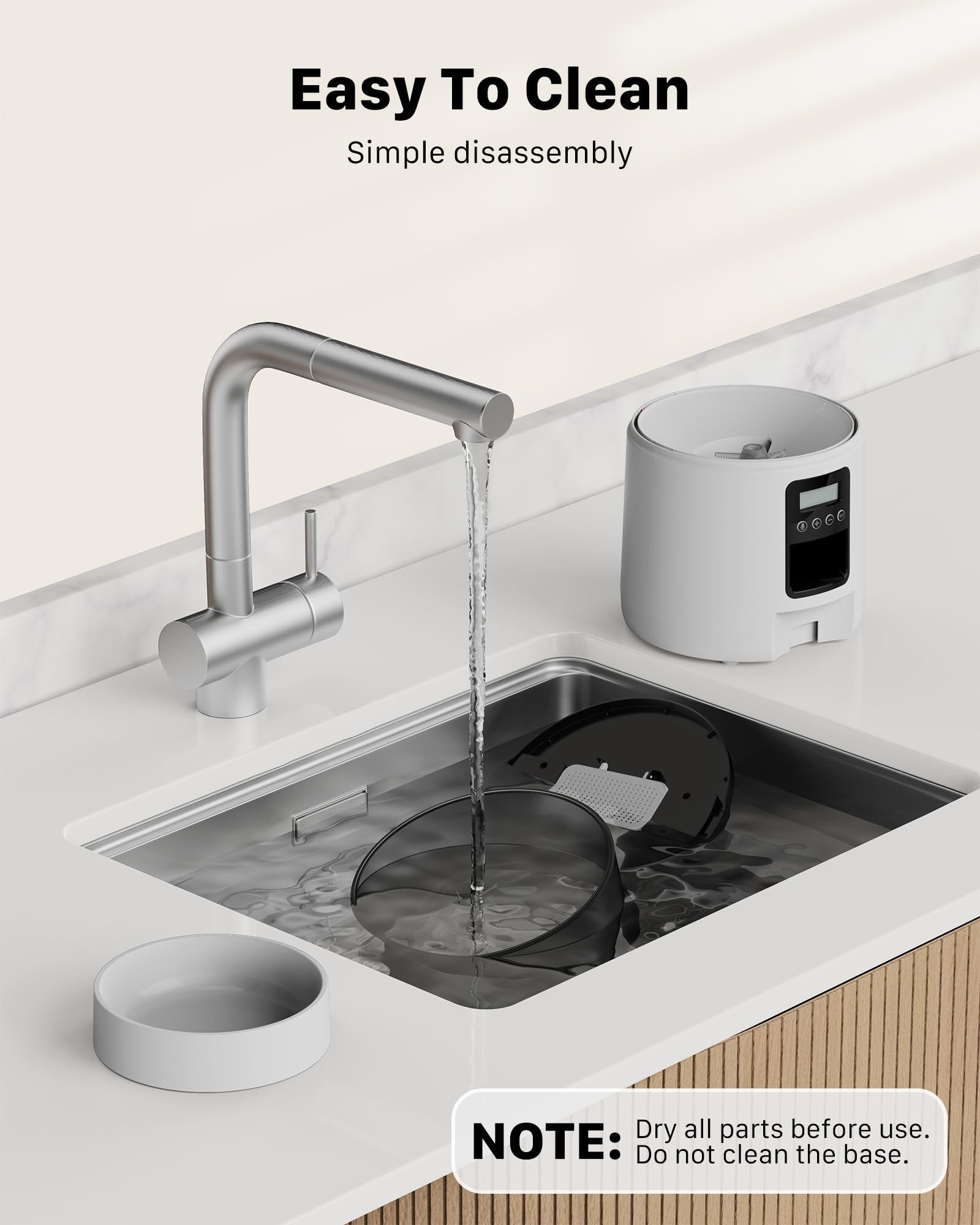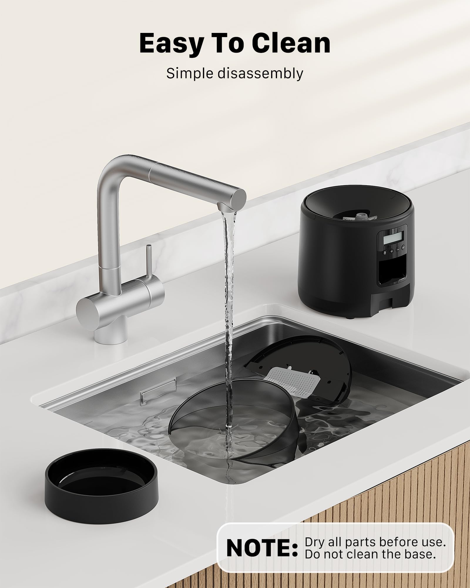 - 【Professional Team, I trust BEMOONY】 Batteries are not included in the package. The disassembly steps of dog feeder are simple, simplifying the cleaning steps for mom. Make it easier for mom. If there is any problem, mom can contact BEMOONY service team.