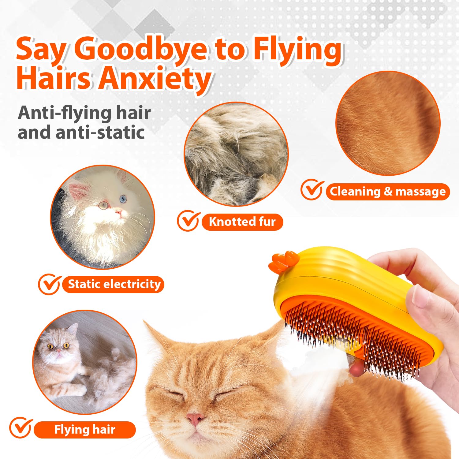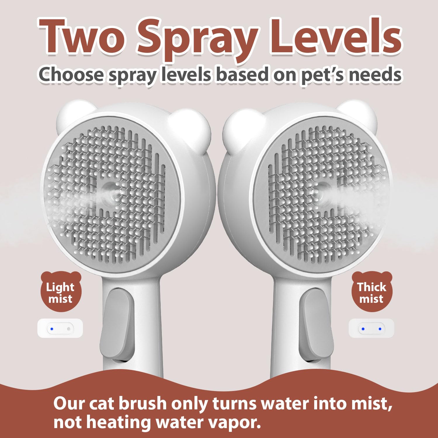 Note: Our cat steam brush only turns water into mist, not heating water into hot vapor.